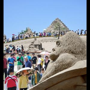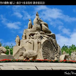 砂像テーマ:「どうぶつ砂図鑑」~ぼくらは地球の仲間たち~のメイン砂像をご紹介いたします。